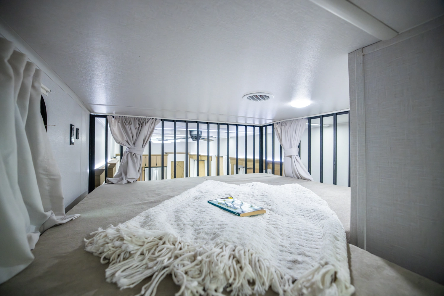 The Wildwood Grand Lodge 42FK is a truly exceptional destination trailer. The large front kitchen is equipped with residential appliances, tons of cabinet and pantry space, and a free-standing dinette. The large living area provides two sofas and an entertainment center with TV and fireplace, while the large rear master bedroom offers a full wardrobe and dresser. The HUGE walk-up loft is perfect for friends and family, with four separate bunks and plenty of space to stretch out.