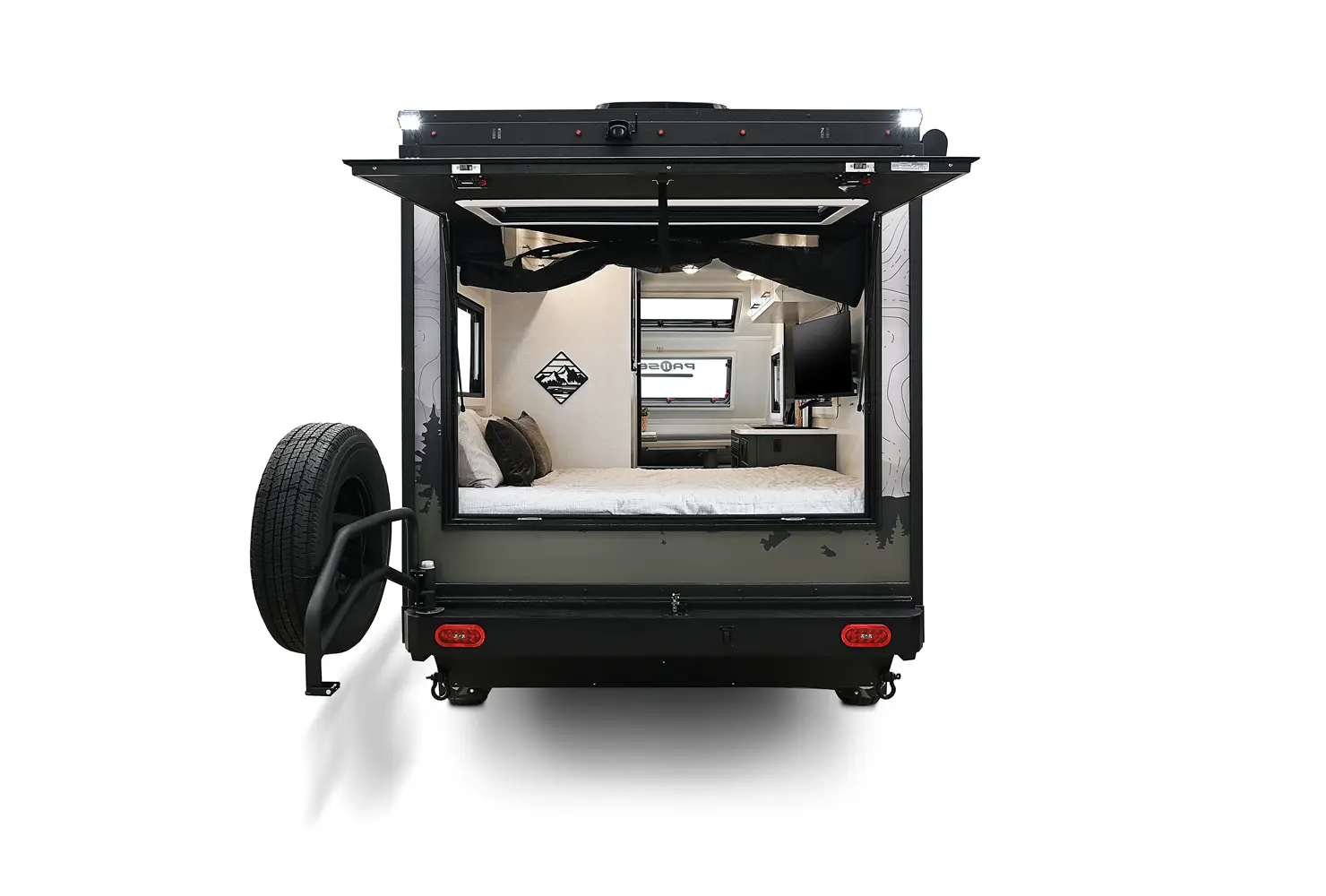 • MORryde Huck- Rivet Aluminum Frame: MORryde Independent Air Ride Suspension w/Bilstein Shocks, Articulating Hitch, A-Frame Storage Box, Automotive Off-Road Rear Bumper w/2 Swinging Tire Carriers, 25" Ground Clearance