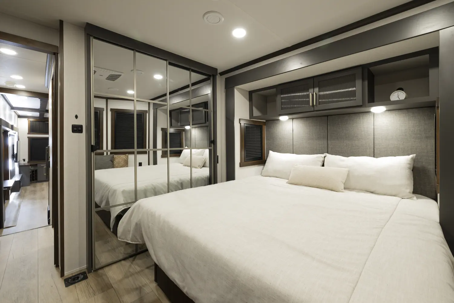 • Residential-Style Headboard with Luxurious Bedding Décor