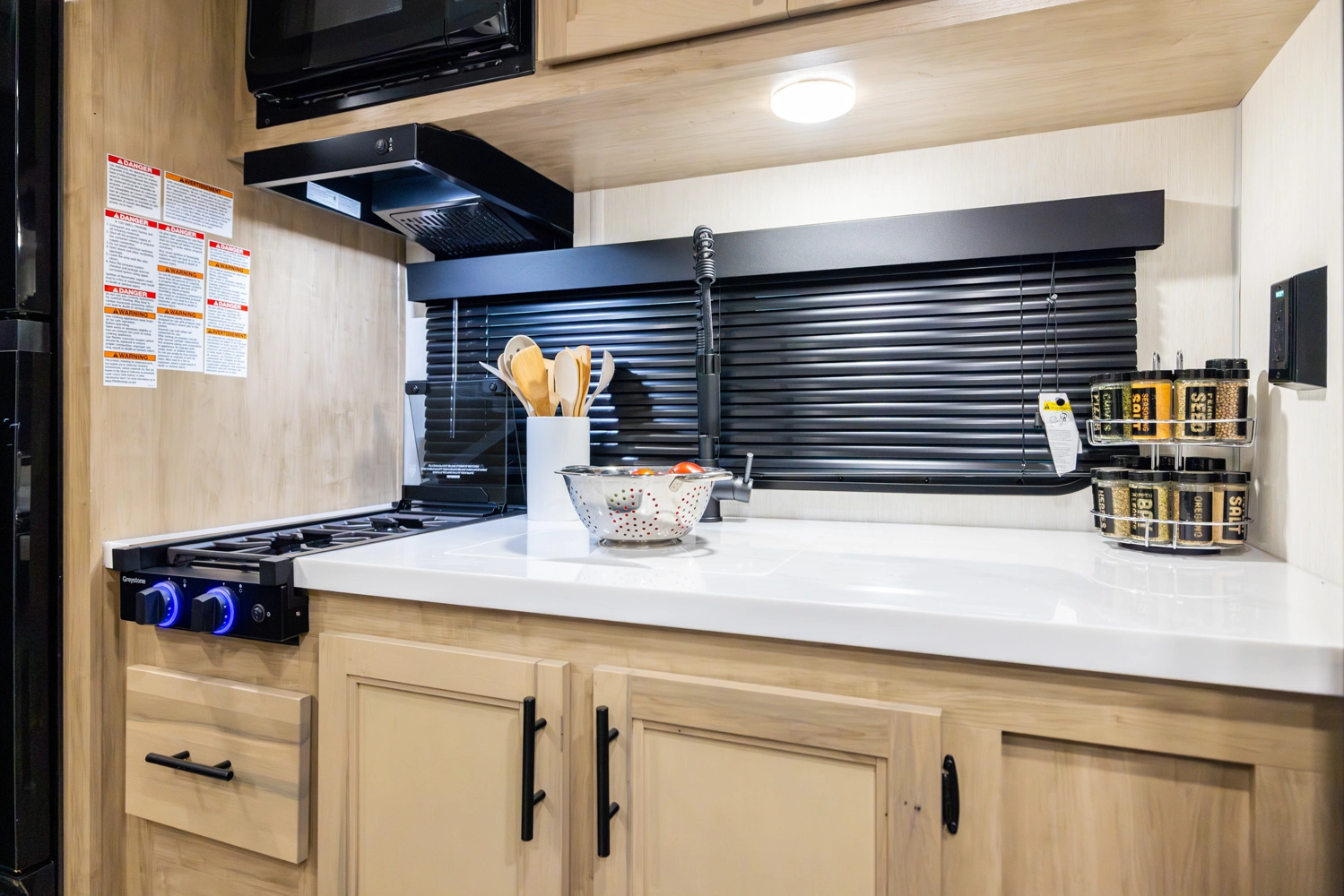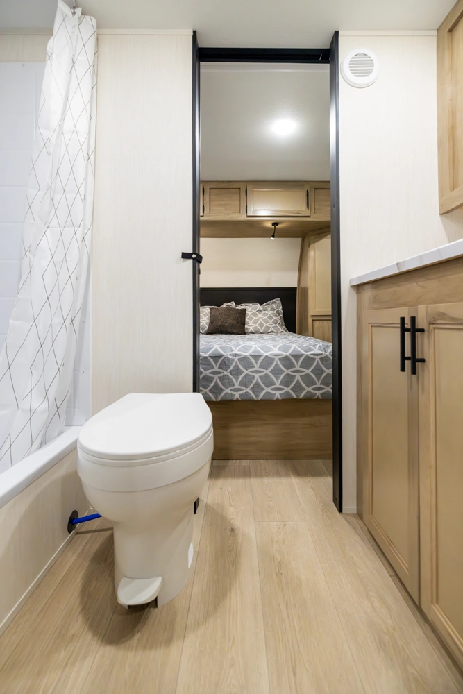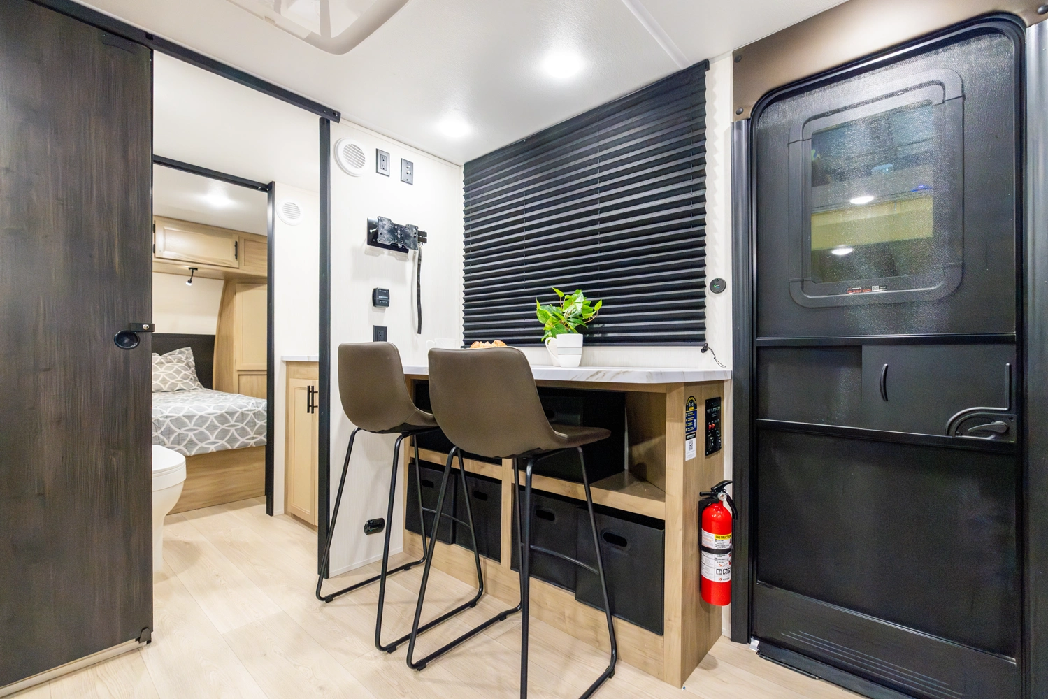 • Blackout Glass, Safety Slam, Friction Hinge Entry Door with Window and Shade Prep (N/A on LP models)