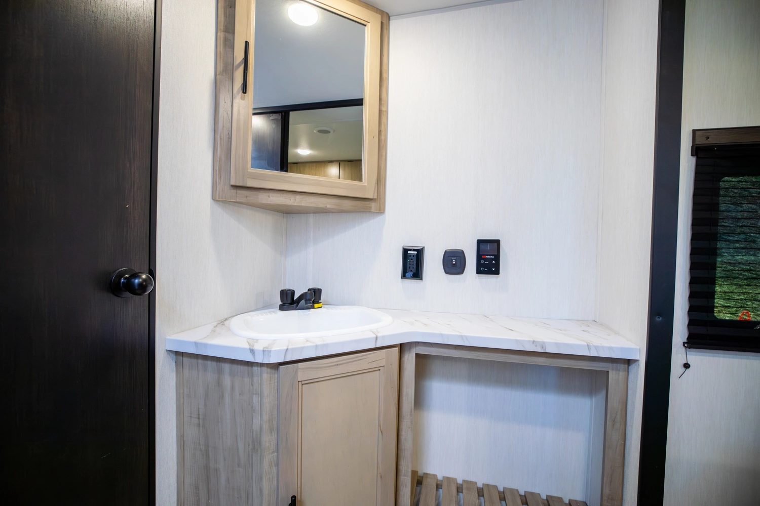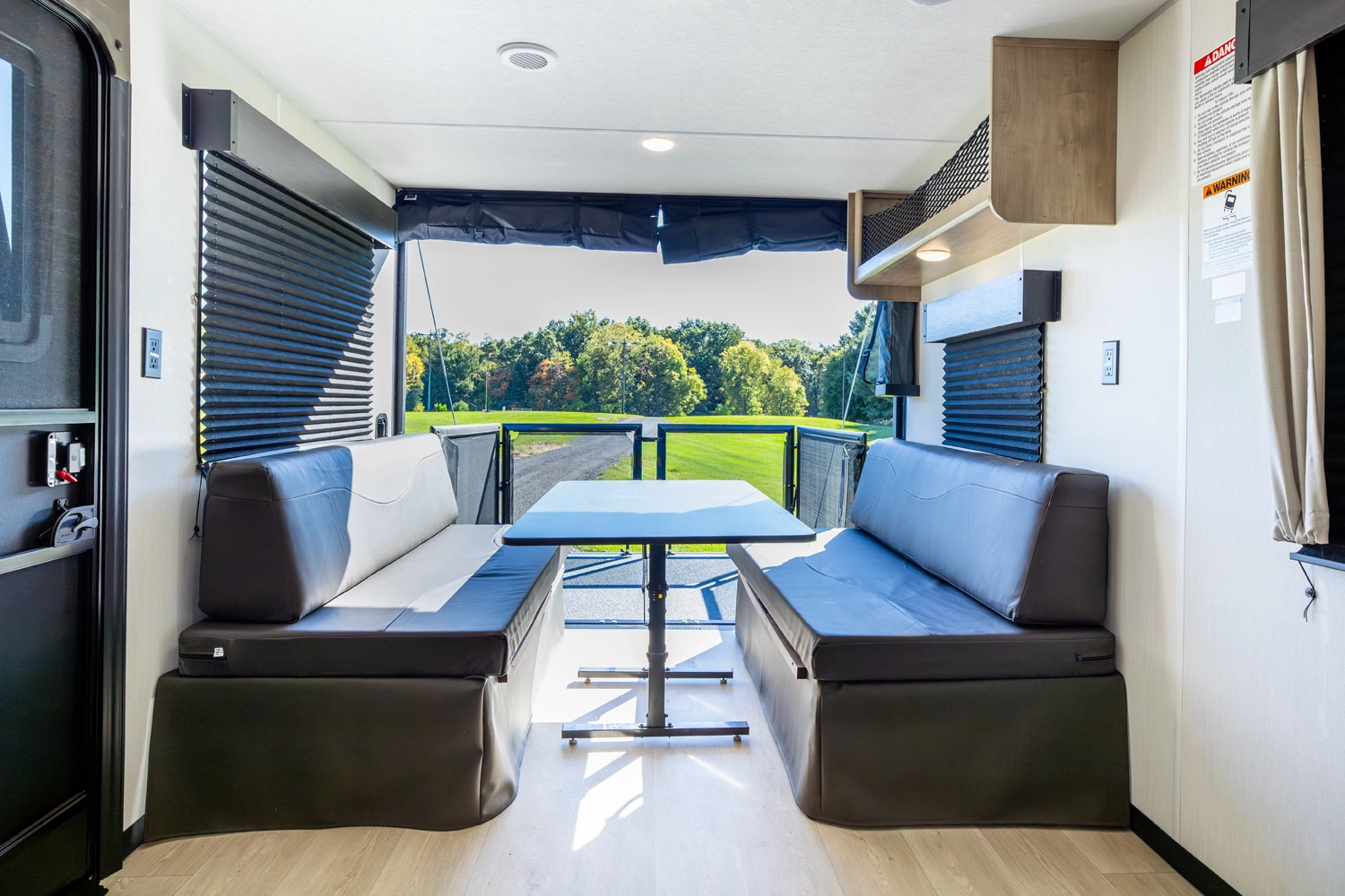• Blackout Glass, Safety Slam, Friction Hinge Entry Door with Window and Shade Prep (N/A on LP models)