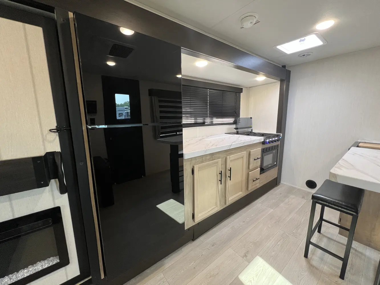 • Blackout Glass, Safety Slam, Friction Hinge Entry Door with Window and Shade Prep (N/A on LP models)
