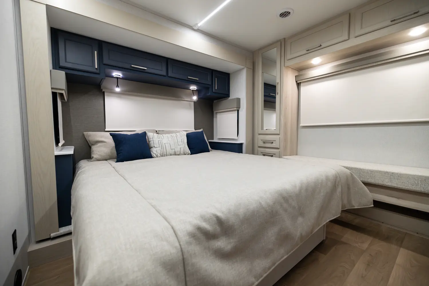 • Aluminum Bed Base w/King Bed (N/A in 377DS = 2 Queen Beds)