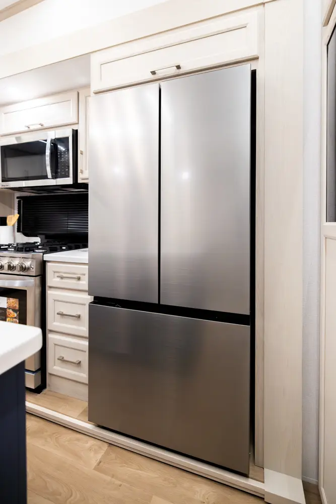 • Stainless Steel Residential Style Appliance Package w/18 Cu Ft 12V Refer and Large Range