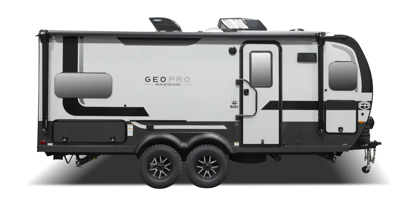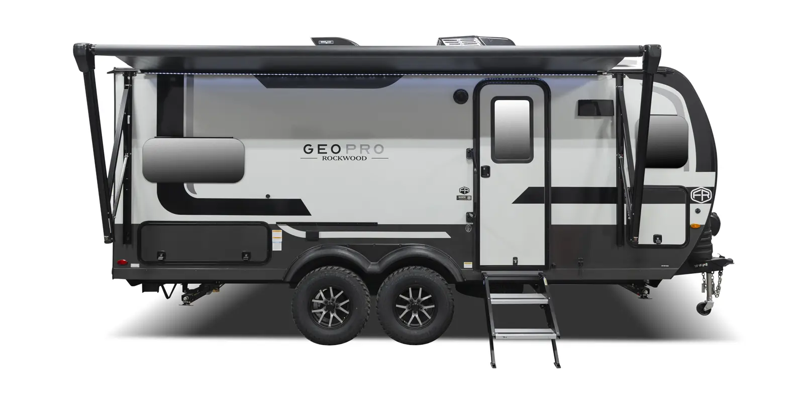 The 20FK is a compact trailer packed with big features! Our first dual axle Geo Pro gives you improved stability and towing confidence in a lightweight design. The front kitchen offers excellent counter space while the rear sleeping area and slide-out create a comfortable, open living space. At just over 21 feet, and around 4,200 lbs., the 20FK delivers easy towing with the durability and off grid features that Rockwood is known for.