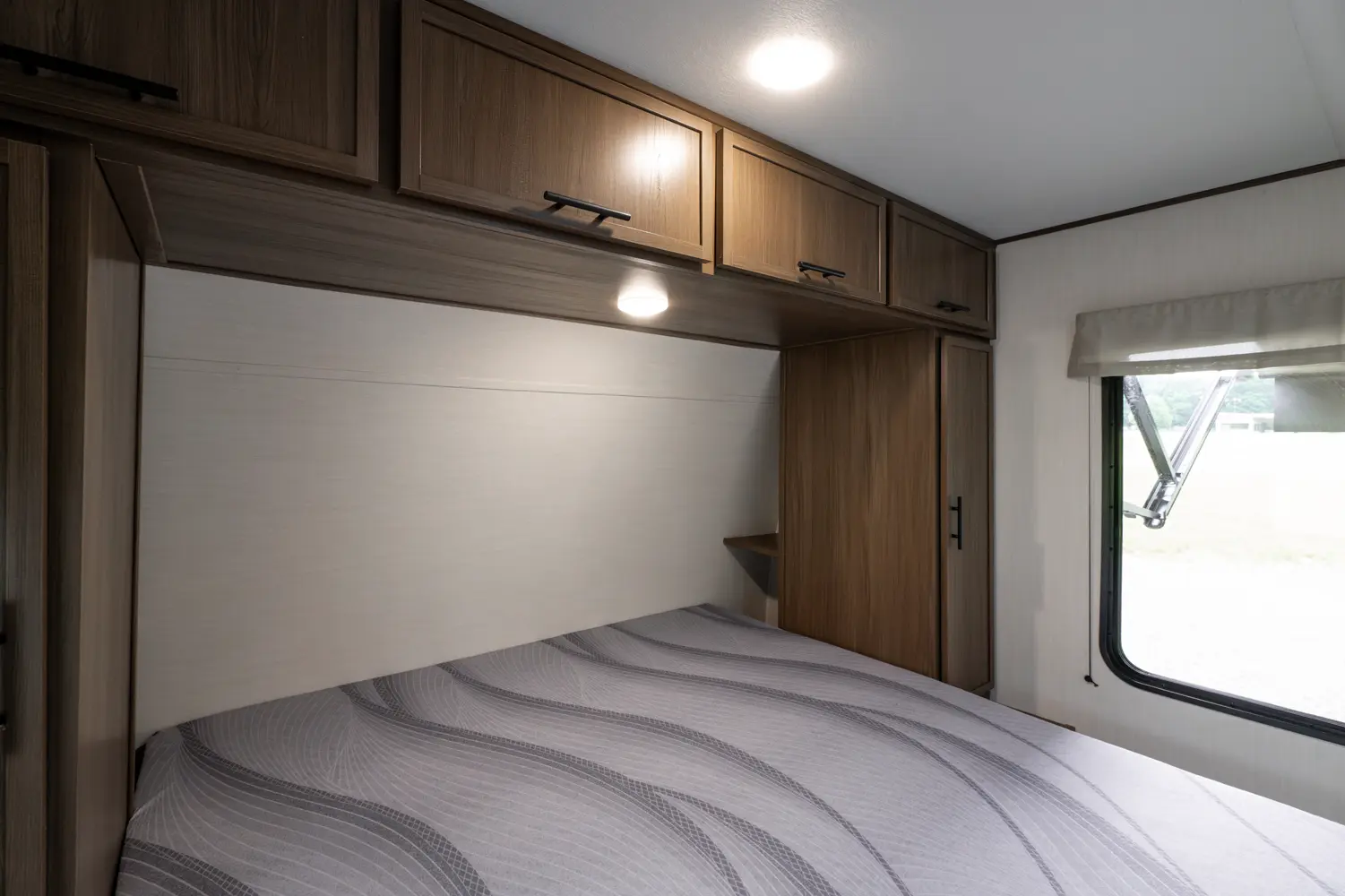 • Enclosed Overhead Storage Above Bed